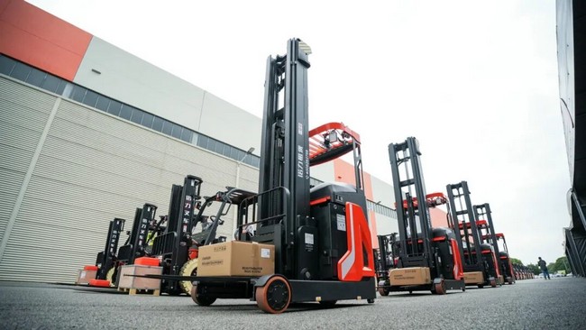 近日,诺力租赁向某头部新能源车企交付第一批100余台诺力叉车(订单共计200余台),交付车型丰富多元,涵盖诺力AS系列锂电叉车、电动搬运车、电动堆垛车、牵引车及前移式叉车等。此次交付精准匹配客户需求,在硬件配置上为客户生产环节提供有力支撑,助力客户提升生产效率、保障生产流程顺畅。